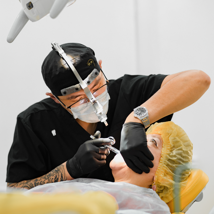 Процедура имплантации длится 4-5 часов на одной челюсти под местной анестезией. В случае необходимости, согласно подписанному плану лечения, удаляют оставшиеся зубы и устанавливают 4 или 6 имплантатов.